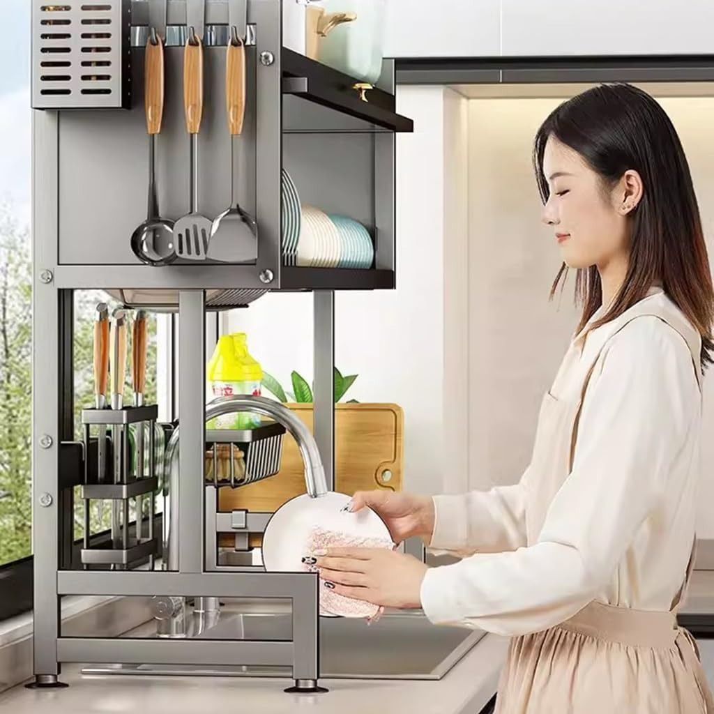 Design robuste et durable : Fabriqué en acier inoxydable, cet égouttoir supporte de lourdes charges et résiste à l’humidité, parfait pour l’usage quotidien au-dessus de votre évier.