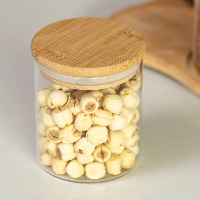 - Huit pots en verre avec couvercles en bambou hermétiques